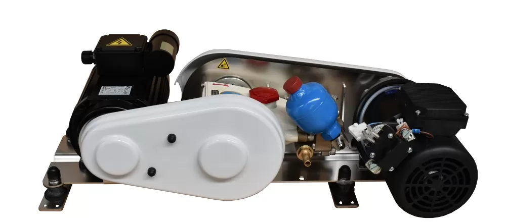 Grâce à ce système, les moteurs s'embrayent indépendamment l'un de l'autre, sans embrayage électrique, ni intervention manuelle sur les poulies. Fiable et sûr à 100%, comme tous les produits Dessalator.